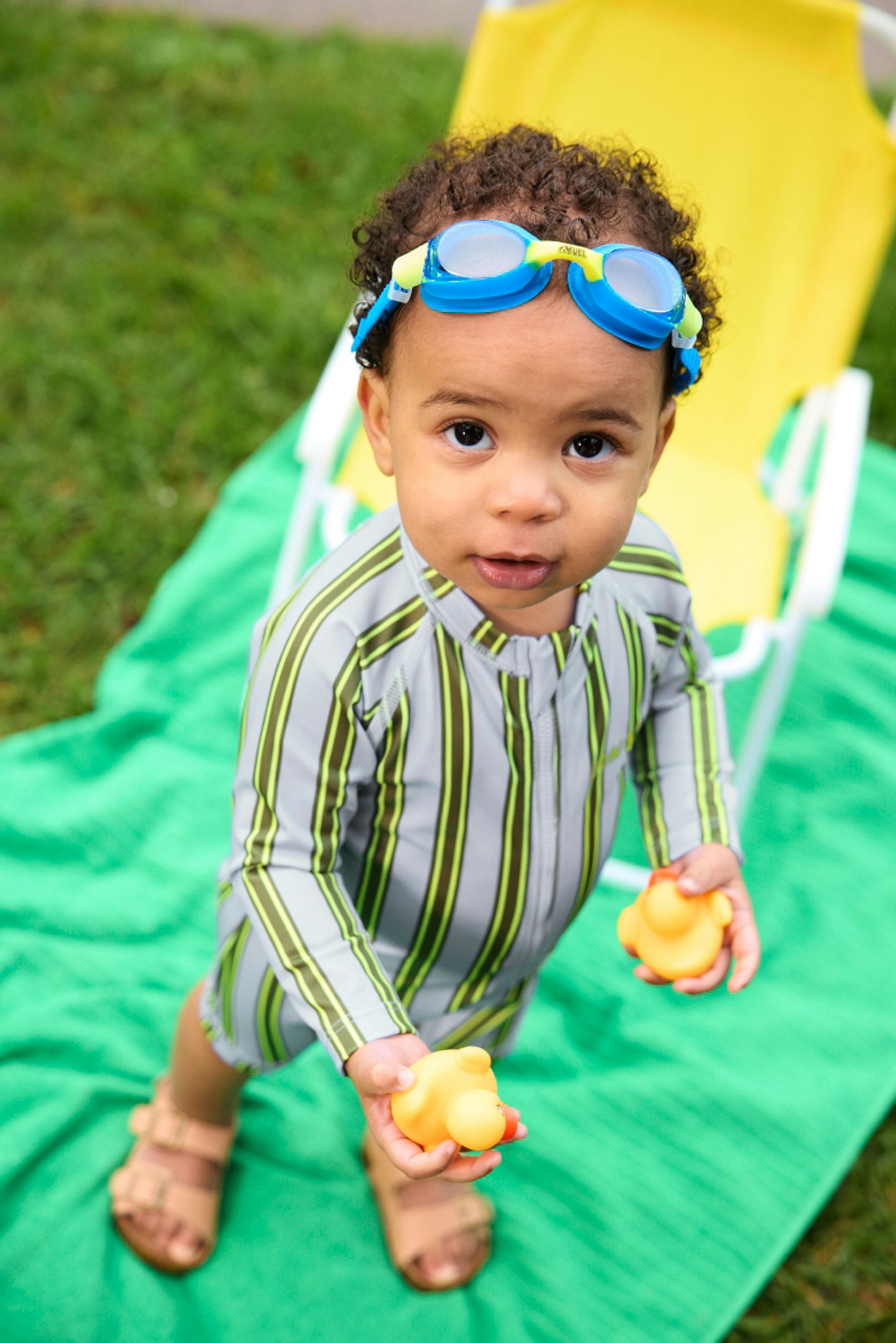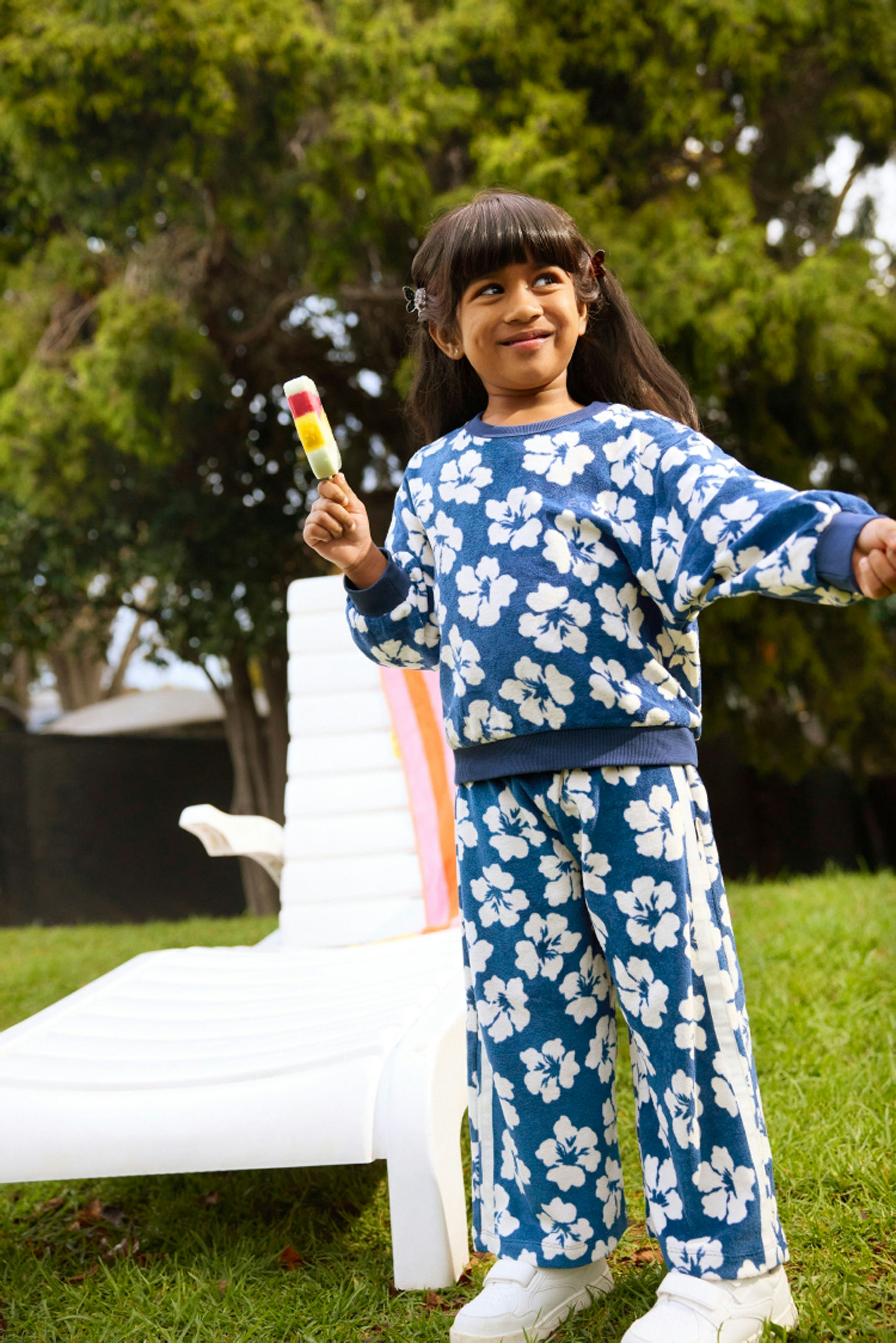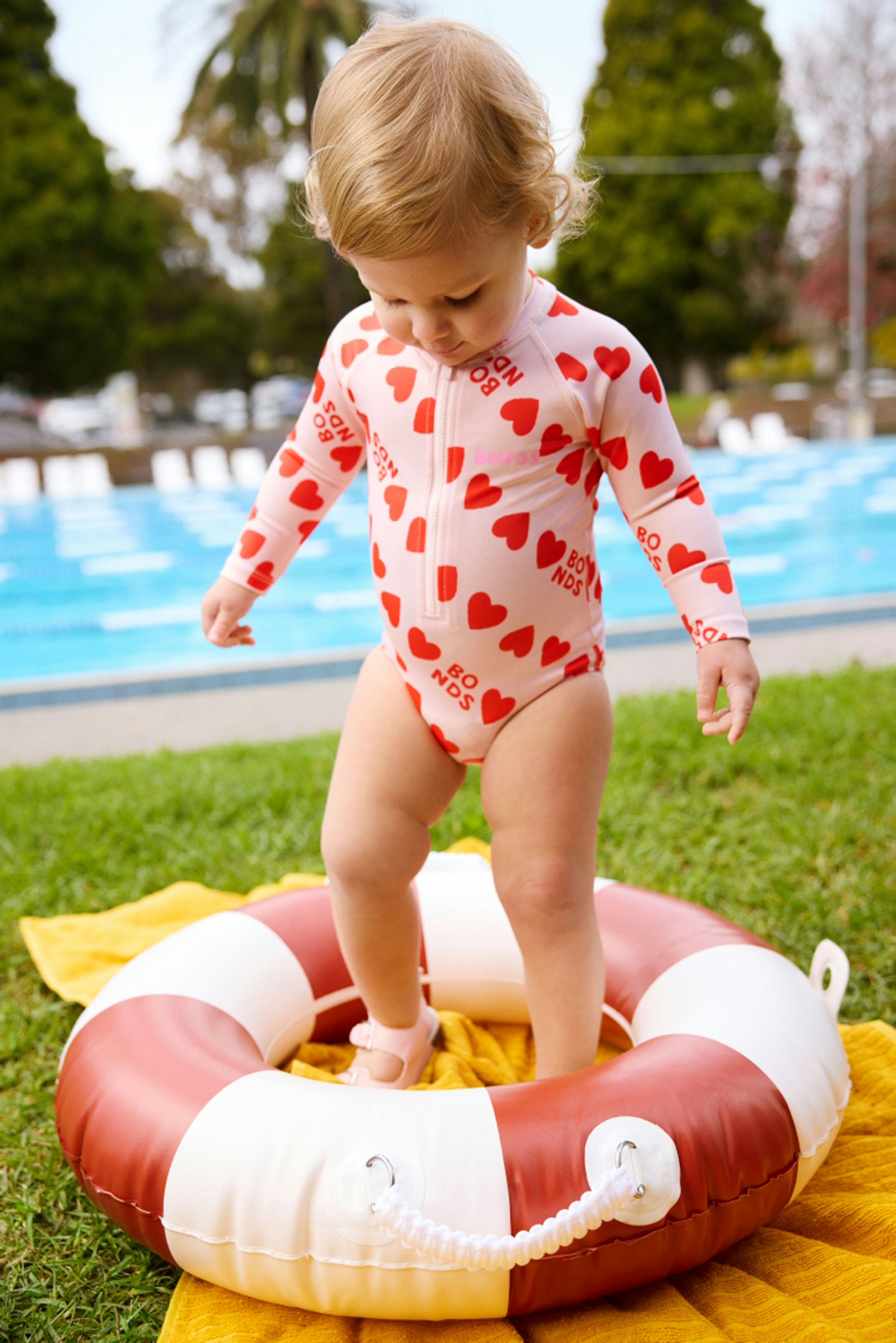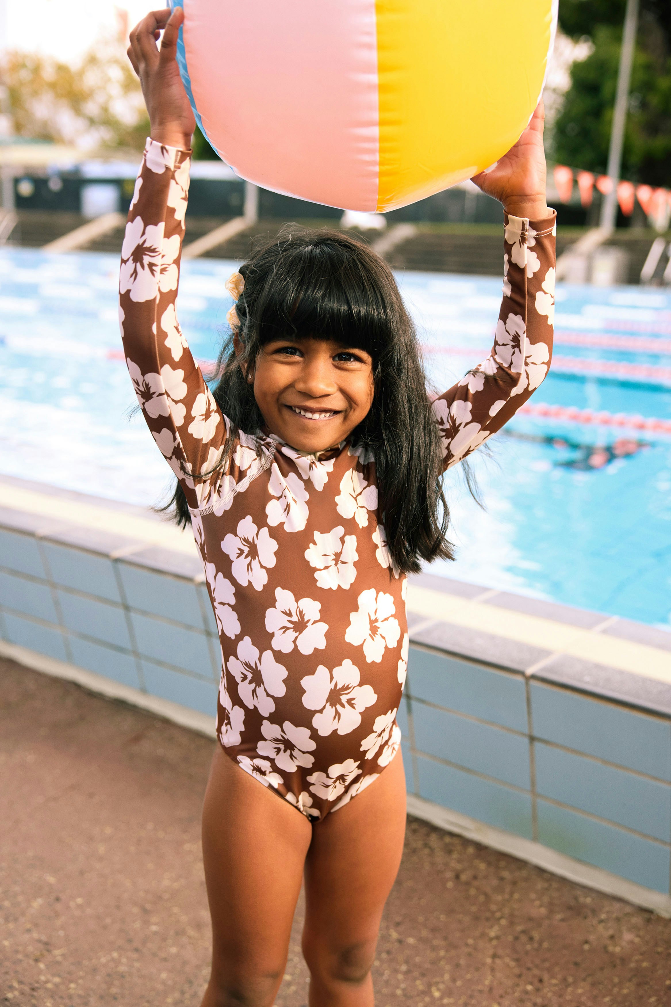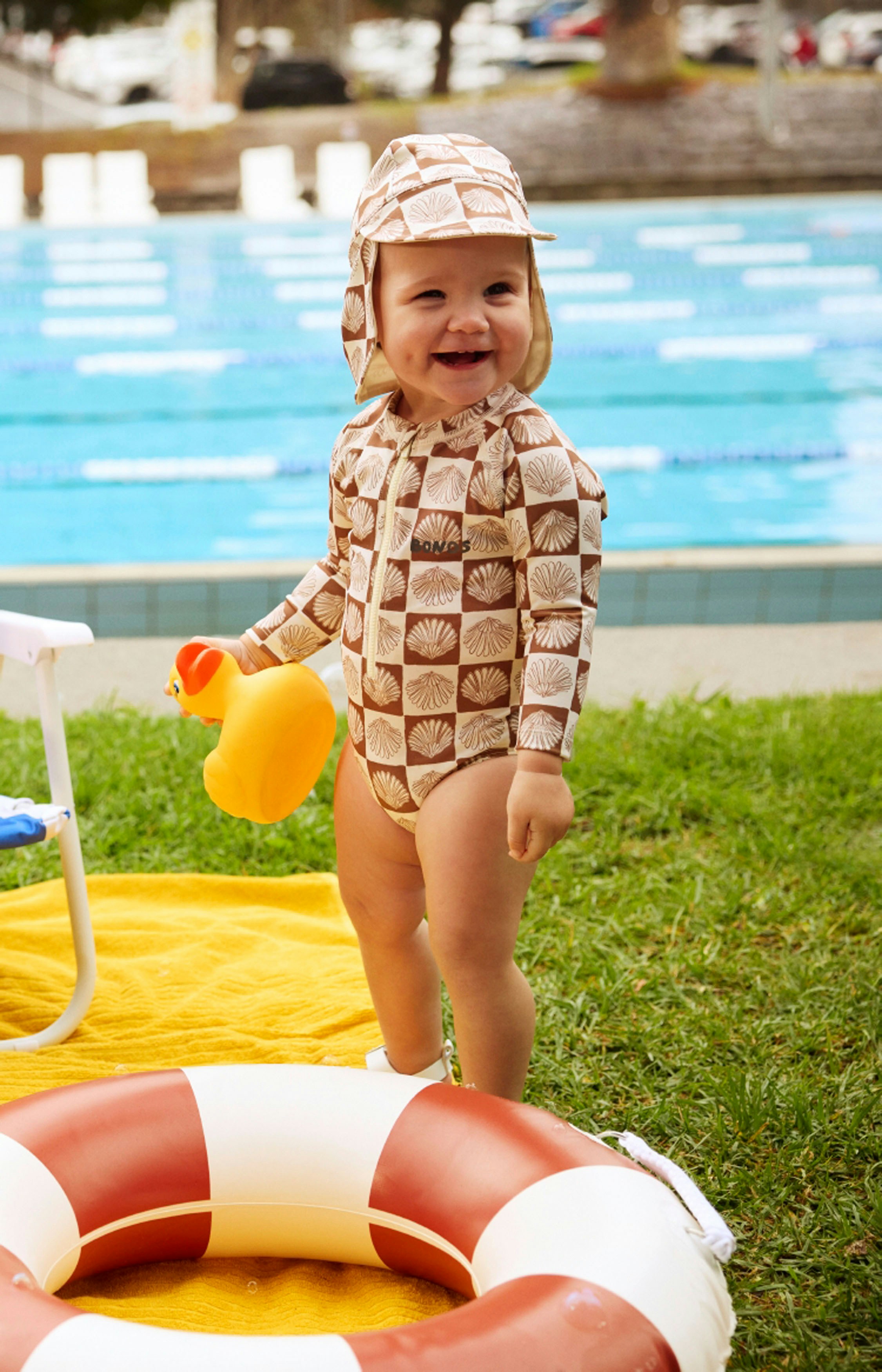 The first campaign revolved around a new kids swimwear collection, so we based our concept on nostalgic summer days at an outdoor pool. We leaned into the vibrant colours and prints of the range through wardrobe and set styling, incorporating playful props like inflatable pool toys, beach chairs and icy poles.